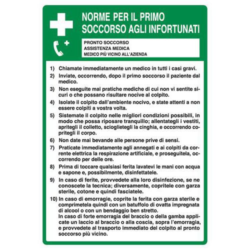 Cartello di indicazione - Norme per il primo soccorso