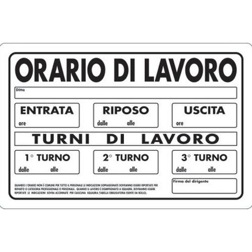 Cartello di indicazione - Orario di lavoro e turni di lavoro