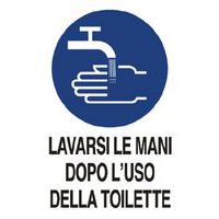 Descrizione Cartello di obbligo - Lavarsi le mani dopo l'uso della toilette