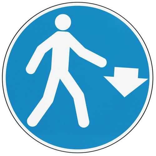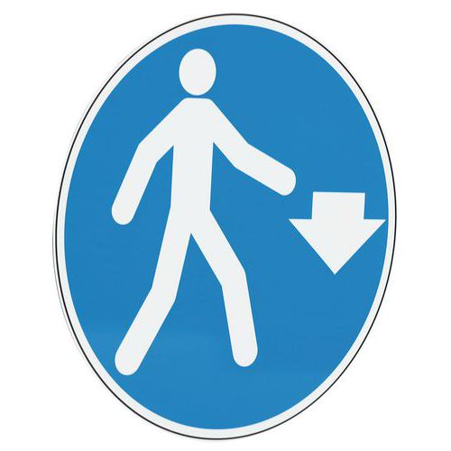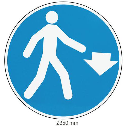 | Descrizione | Cartello Pedoni qui sotto, Adesivo: no, Rigido: si, Norma ISO 7010: no, Pannello, forma: Rotondo |