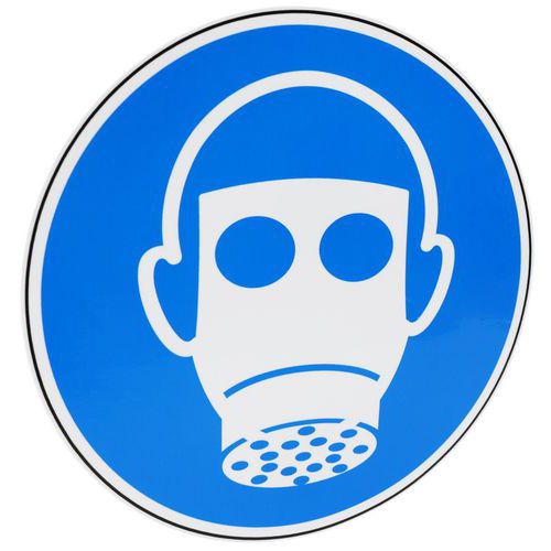 - Con questo cartello con pittogramma, riducete i rischi di lesioni alle vie respiratorie affiggendo l'obbligo di munirsi di maschera respiratoria.