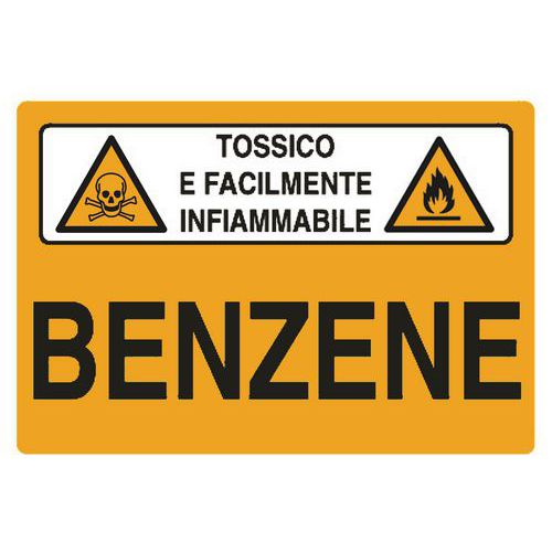 Cartello di pericolo - Benzene Tossico e facilmente infiammabile