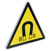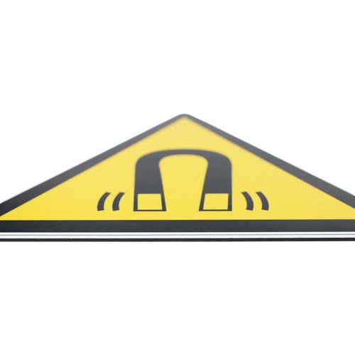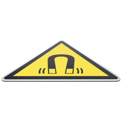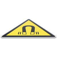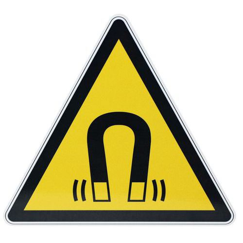 - Questo cartello di segnalazione con pittogramma indica la presenza di un campo magnetico e la necessità di adottare delle precauzioni.