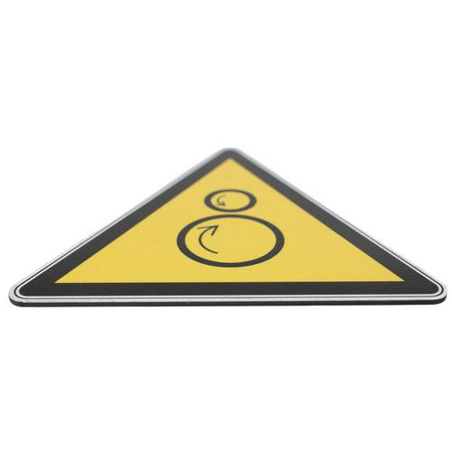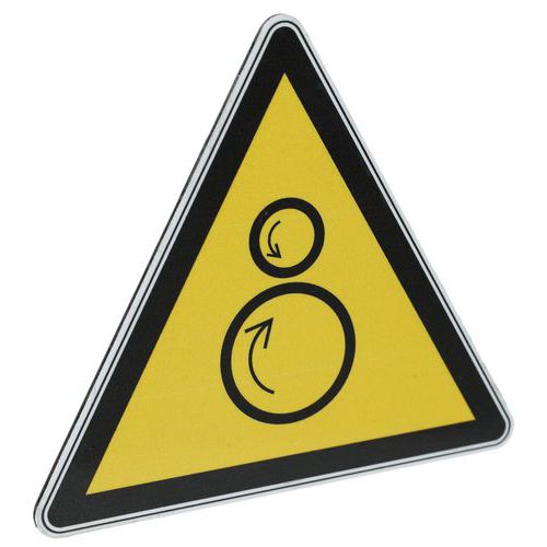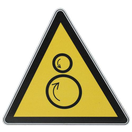 - Questo cartello con pittogramma è quindi particolarmente adatto a indicare un pericolo legato ai rulli controrotanti.