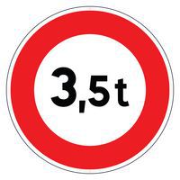| Descrizione | Cartello di segnalazione B13 Transito vietato ai veicoli superiori a 3,5 t, Pannello, forma: Rotondo |