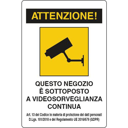 Cartello di videosorveglianza - Attenzione questo negozio è sottoposto a videosorveglianza continua