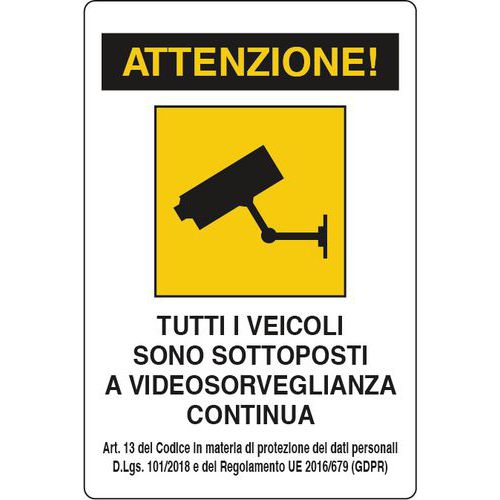 Cartello di videosorveglianza - Attenzione tutti i veicoli sono sottoposti a videosorveglianza continua