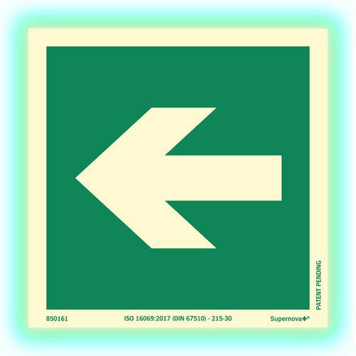 Cartello fotoluminescente - Freccia per uscita di emergenza - Supernova+®