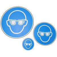 Cartello segnaletico per obbligo di indossare occhiali di protezione. In PVC con spessore di 1 mm. Ideale per interni. Trattamento ignifugo M1. Robusto e facile da fissare.