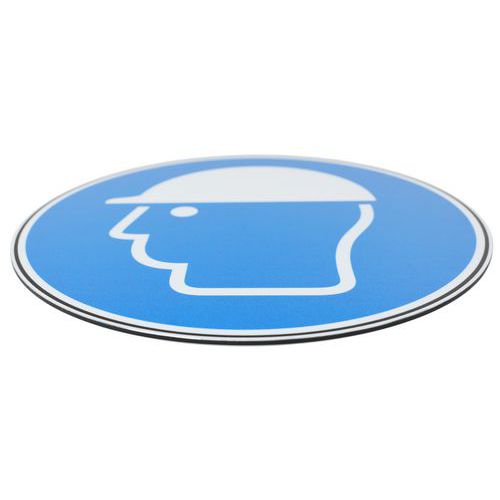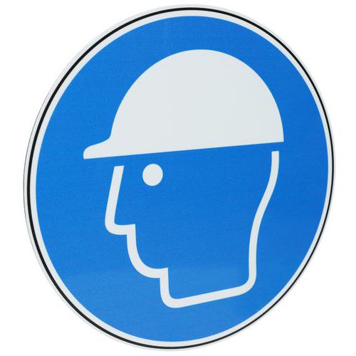 | Descrizione | Cartello Casco di protezione obbligatorio, Adesivo: no, Rigido: si, Norma ISO 7010: si, Pannello |