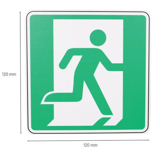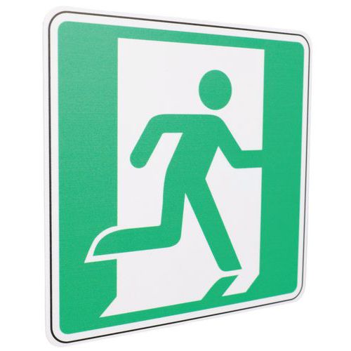 | Descrizione | Cartello Uscita di sicurezza a destra, Adesivo: no, Rigido: si, Pannello, forma: Quadrato |