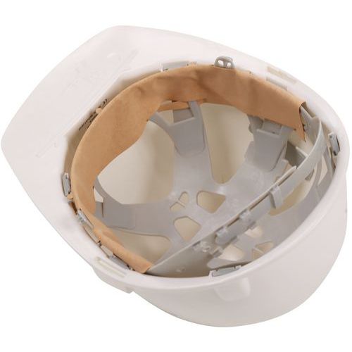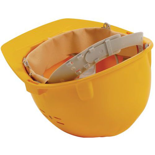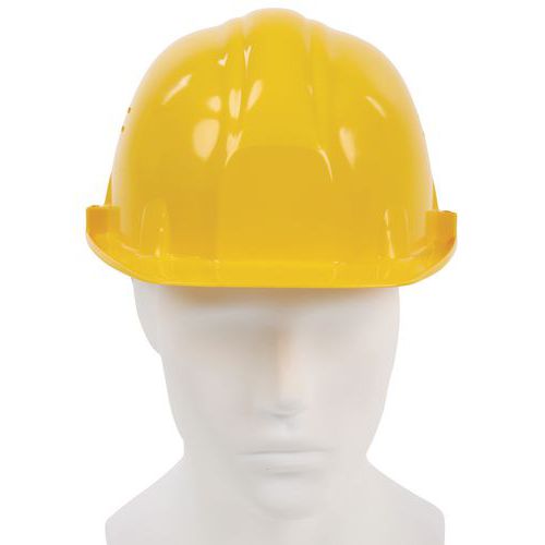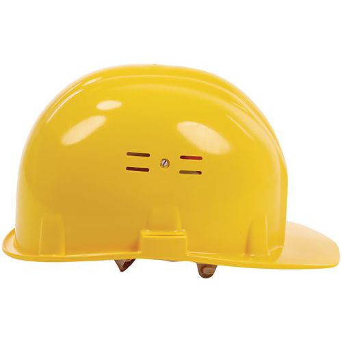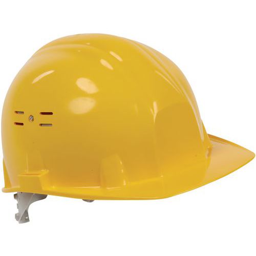 Casco di protezione aerato Classic II - Manutan Expert - Casco di protezione regolabile in PE HD con trattamento anti-UV. Tracciabilità: data di fabbrica e identificazione del lotto indicati sotto la visiera.