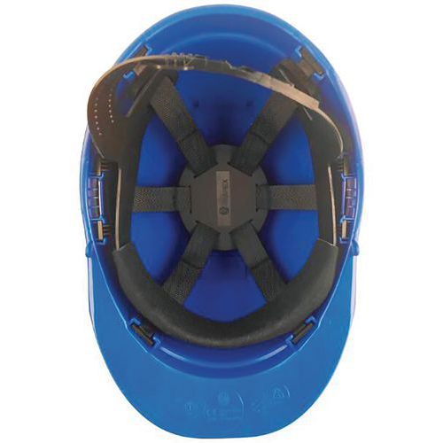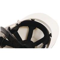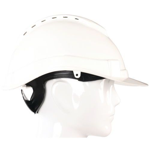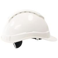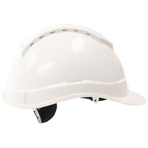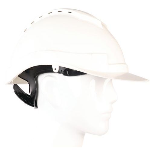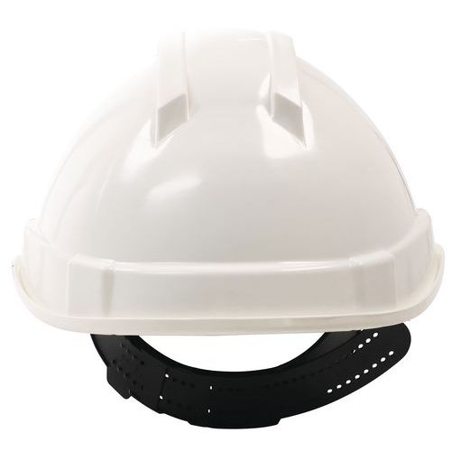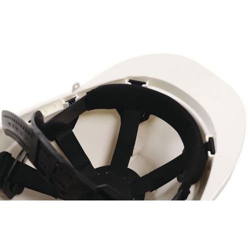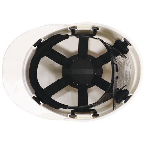 Casco di sicurezza classico con 6 punti di fissaggio. Il casco da cantiere bianco è l'elemento essenziale per lavori pesanti. Questo moderno casco con visiera è dotato di un'imbracatura interna regolabile. Un design di sicurezza resistente che protegge da urti e agenti atmosferici. La scocca ventilata consente la dissipazione del calore e un migliore livello di comfort.