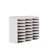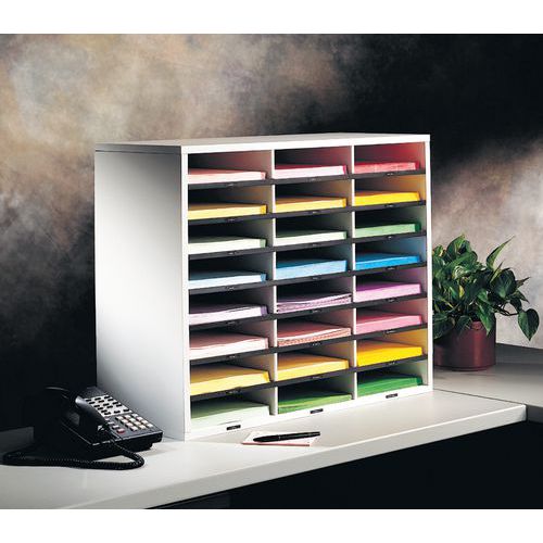 | Descrizione | Casellario a 24 scomparti, Materiale: Truciolare, Colore: Grigio chiaro, Larghezza totale: 73.7 cm |