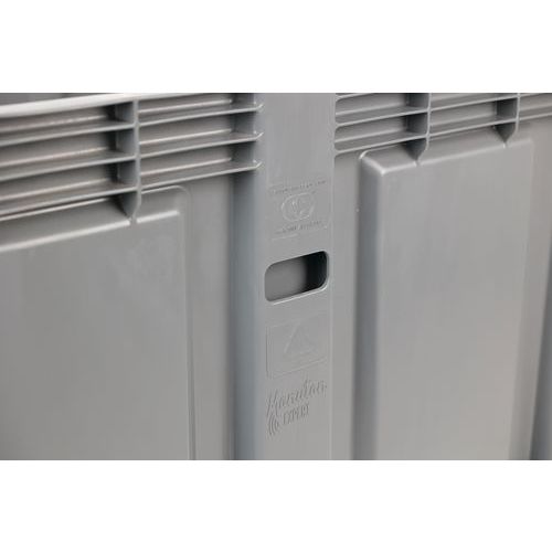 | Descrizione | Cassa-pallet impilabile Euro, Capacità: 550 L, Carico max.: 500 kg, Altezza totale: 850 mm |