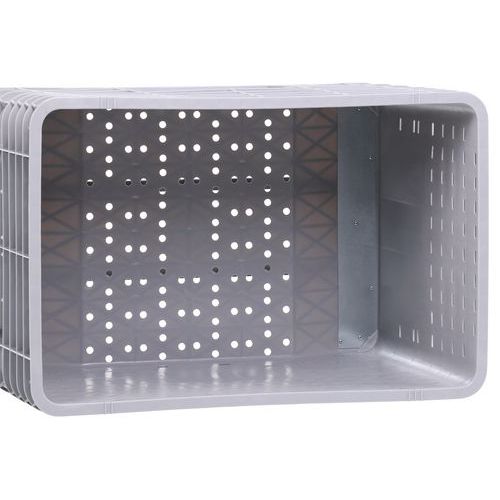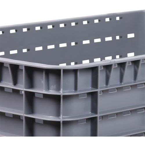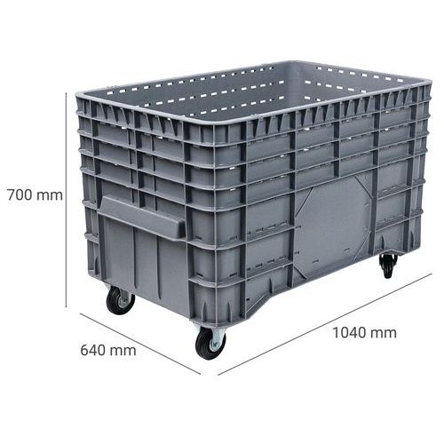 | Descrizione | Cassa-pallet impilabile, Capacità: 300 L, Carico max.: 120 kg, Altezza totale: 700 mm |