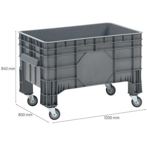 Cassa-pallet impilabile - Pareti piene - Su rotelle - Manutan Expert