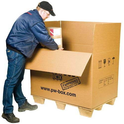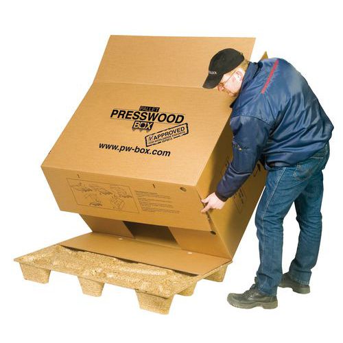 Apertura su un lato: carico più facile. Pallet senza chiodi né viti per una maggiore sicurezza. Montaggio semplice e rapido senza reggiatura. Cassa-pallet leggera e riutilizzabile. Ottima protezione dei prodotti.