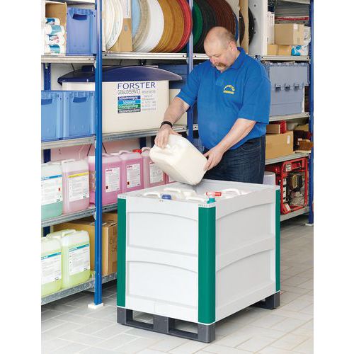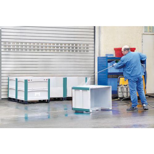 | Descrizione | Cassa-pallet SL86 - Pareti piene - Su pattini - Coperchio ribaltabile su 2 lati |