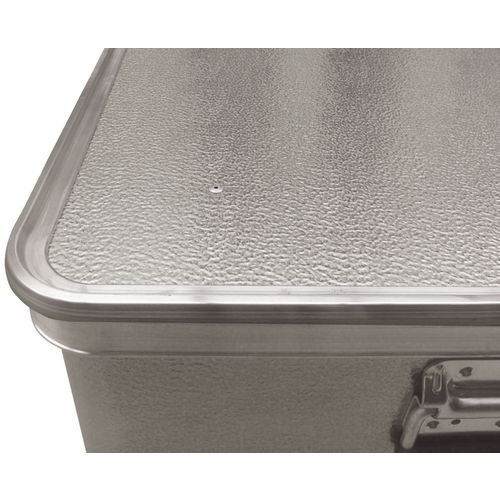 Cassa per il trasporto in alluminio di design e robusta. Finitura arrotondata sugli angoli e profilata per ottenere maggiore spazio. Materiale ad alta resistenza alla corrosione e alle alte temperature. Cassa maneggevole grazie alle impugnature a molla. Coperchio a cerniera rimovibile con guarnizione in gomma piena.