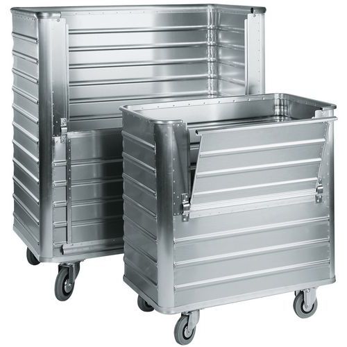 - Carrello contenitore resistente alla corrosione con pannello ribaltabile per il carico/scarico rapido.