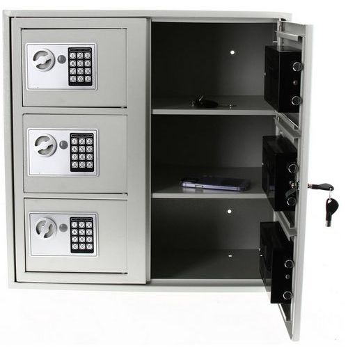 | Descrizione | Cassaforte con serratura digitale a 6 scomparti, Capacità: 27 L, Tipo di chiusura: Con chiave e codice |