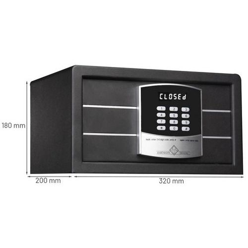 Cassaforte da albergo Hartmann, Capacità: 12 L, Tipo di chiusura: Con codice, Larghezza totale: 320 mm