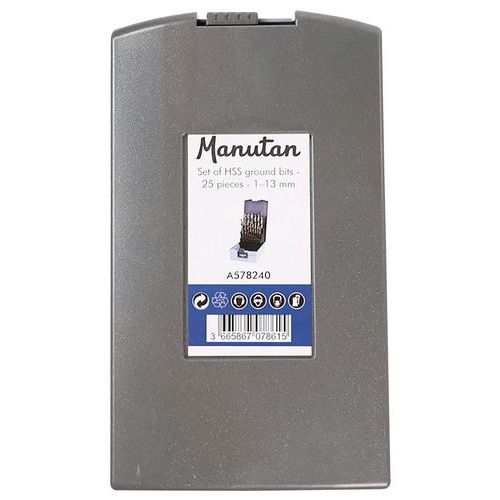 Cassetta 25 punte cilindriche HSS fresate e molate - Manutan Expert