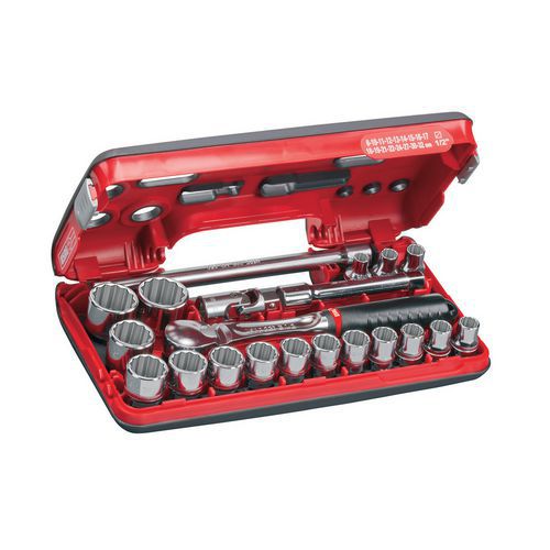 | Descrizione | Cassetta bimateriale con bussole poligonali , N. di pezzi: 21, Assortimento: Set di utensili |