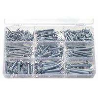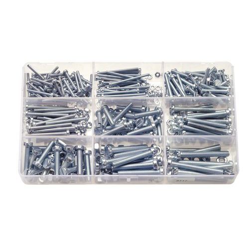| Descrizione | Cassetta con viti a testa cilindrica a taglio e dadi esagonali, Materiale: PVC, N. di pezzi: 550 |