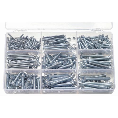 Cassetta con viti a testa cilindrica a taglio e dadi esagonali - 550 pezzi