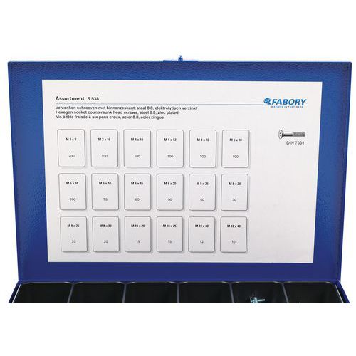 Cassetta con viti esagonali cave a testa fresata - 1147 pezzi