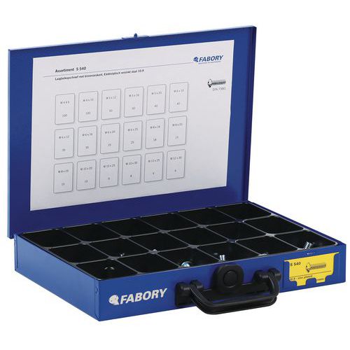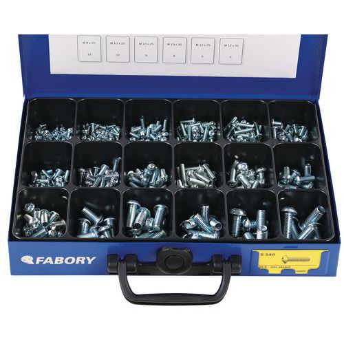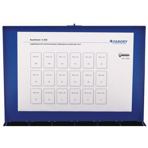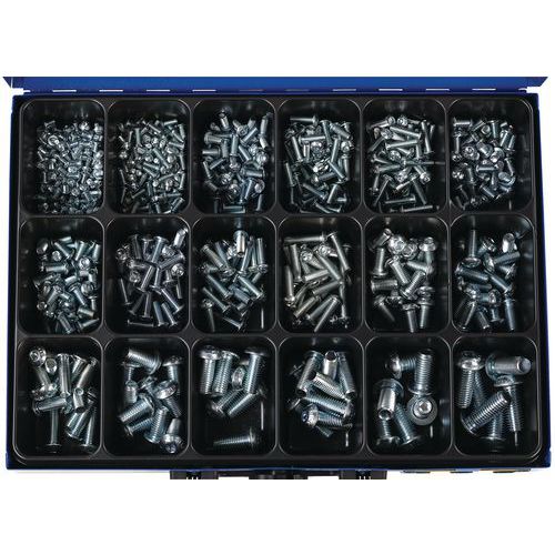 | Descrizione | Cassetta con viti esagonali cave a testa rotonda, N. di pezzi: 582 |
