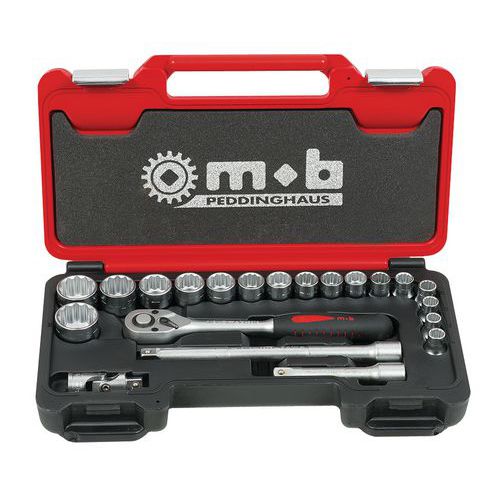 | Descrizione | Cassetta da 21 pezzi da 1/2, 12 lati, cricchetto a goccia, Rif. Fabbricante: 9435021101 |