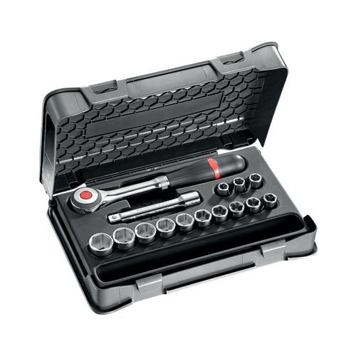 | Descrizione | Cassetta di ABS con bussole esagonali, N. di pezzi: 15, Assortimento: Set di utensili, Materiale: Acciaio |