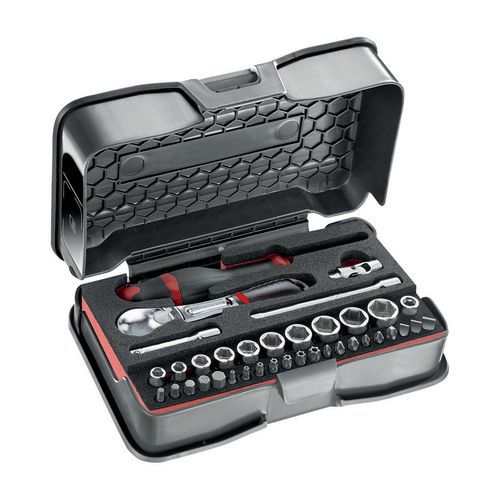 | Descrizione | Cassetta di ABS con bussole esagonali , N. di pezzi: 37, Assortimento: Set di utensili, Materiale: Acciaio |
