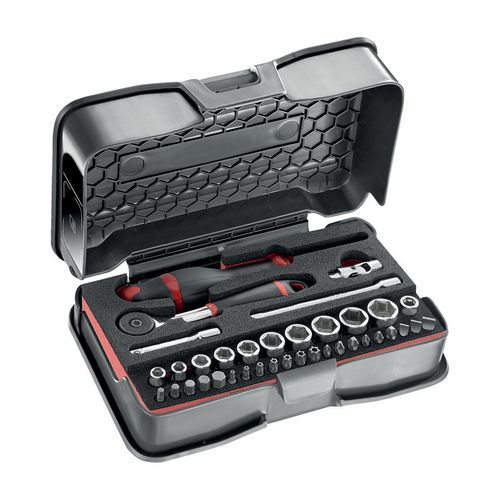 | Descrizione | Cassetta di ABS con bussole esagonali, N. di pezzi: 37, Assortimento: Set di utensili, Materiale: ABS |