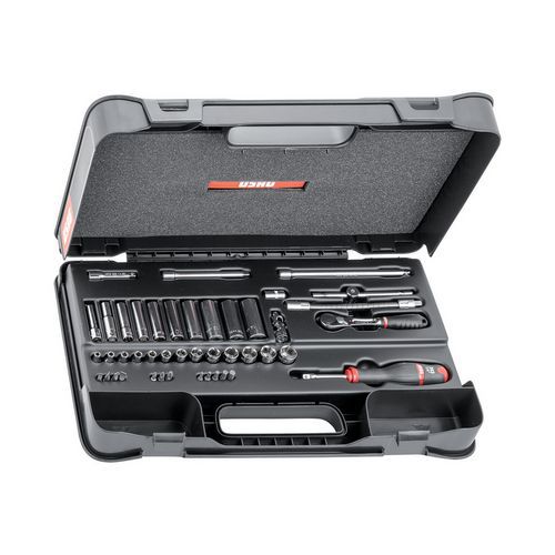 | Descrizione | Cassetta di ABS con bussole esagonali , N. di pezzi: 44, Assortimento: Set di utensili, Materiale: ABS |