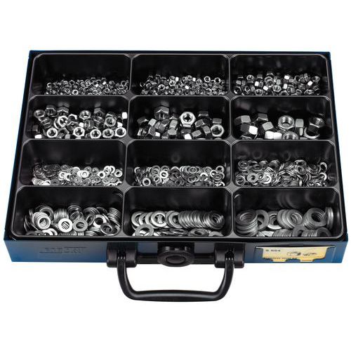 Cassetta di dadi esagonali e rondelle piatte in inox - 1.700 pezzi