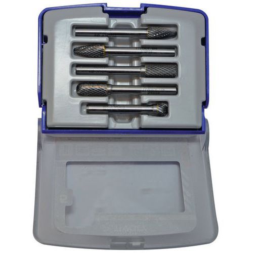 | Descrizione | Cassetta di frese-lime in carburo Ø 8 mm attacco dritto, N. di pezzi: 5, Materiale: Acciaio |