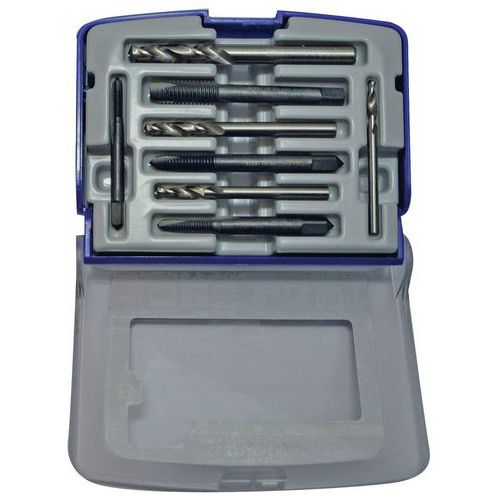 | Descrizione | Cassetta di punte HSS e maschi Gun, N. di pezzi: 8, Materiale: Acciaio, Tipo di supporto: Plastica |