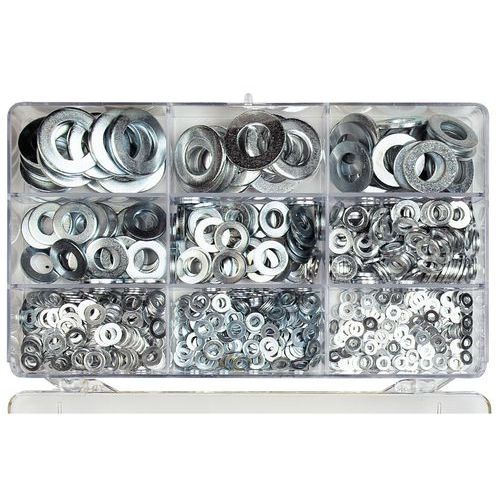 | Descrizione | Cassetta di rondelle piatte, Materiale: Acciaio, N. di pezzi: 825, Modello: Set |
