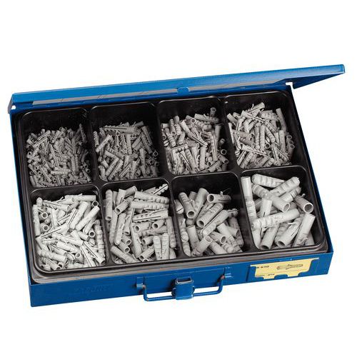 | Descrizione | Cassetta di tasselli in nylon, N. di pezzi: 720, Materiale: Nylon, N. di scomparti: 8 |