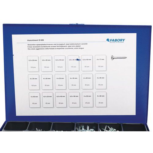Cassetta viti con impronta a croce Pozidriv® testa svasata 1225 pezzi