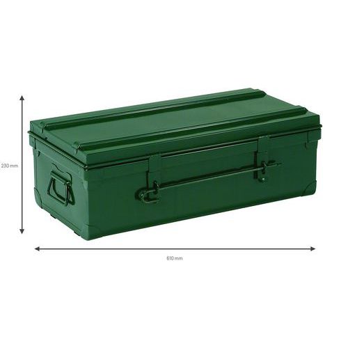 Cassetta ultra-resistente in lamiera d'acciaio XC sp. 5/10 mm. Possibilità di sovrapposizione grazie ai rinforzi superiori saldati. Fondo con rinforzi saldati per una maggiore protezione dagli urti. Concezione intelligente: robusta e al contempo leggera grazie alle pareti scanalate. Modello di cassetta depositato e brevettato a garanzia di una fabbricazione francese di qualità. Per sistemare, classificare, proteggere, trasportare e molto altro ancora