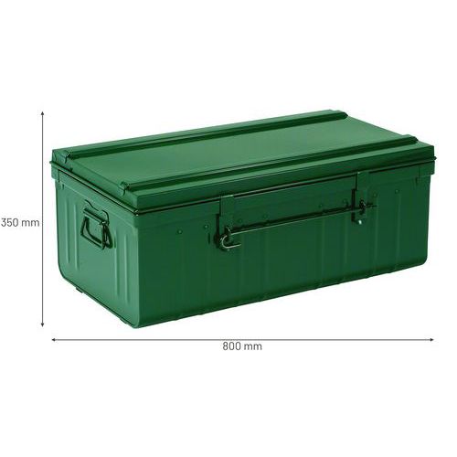 Cassetta ultra-resistente in lamiera d'acciaio XC sp. 5/10 mm. Possibilità di sovrapposizione grazie ai rinforzi superiori saldati. Fondo con rinforzi saldati per una maggiore protezione dagli urti. Concezione intelligente: robusta e al contempo leggera grazie alle pareti scanalate. Modello di cassetta depositato e brevettato a garanzia di una fabbricazione francese di qualità. Per sistemare, classificare, proteggere, trasportare e molto altro ancora