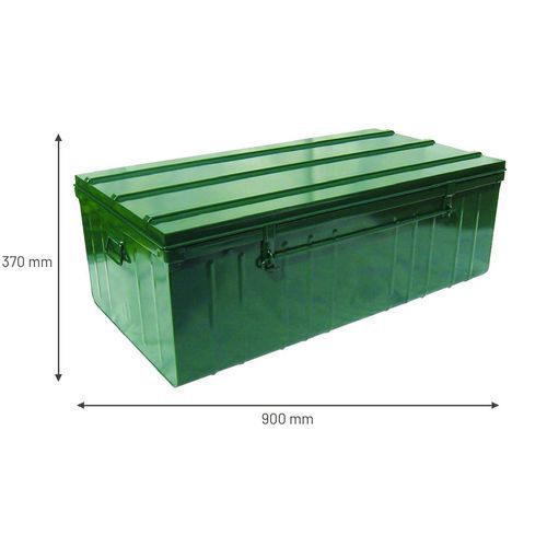 Cassetta ultra-resistente in lamiera d'acciaio XC sp. 5/10 mm. Possibilità di sovrapposizione grazie ai rinforzi superiori saldati. Fondo con rinforzi saldati per una maggiore protezione dagli urti. Concezione intelligente: robusta e al contempo leggera grazie alle pareti scanalate. Modello di cassetta depositato e brevettato a garanzia di una fabbricazione francese di qualità. Per sistemare, classificare, proteggere, trasportare e molto altro ancora