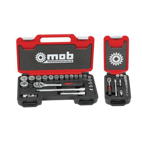 | Descrizione | Cassetta multi-attrezzi cricchetti + bussole 68 pezzi, N. di pezzi: 68, Quadrato: 1/4-1/2 |