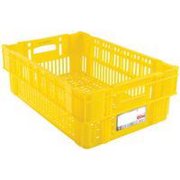 Cassetta 600x400 forata. Ideale nella cucina centrale per il mantenimento della catena del freddo. Aerazione del contenuto. Impilabile e incastrabile tramite rotazione di mezzo giro. Foratura importante che riduce al minimo il tempo del calo di temperatura e facilita la pulizia. Gestione della tracciabilità grazie alle etichette IML (in mould label). Questa marcatura è realizzata mediante IML: un processo che consente di fondere l'etichetta e la plastica durante lo stampo a iniezione per renderla inalterabile e riscrivibile (da utilizzare con pennarello in plastica cancellabile con acqua). Casse disponibili in 5 colori HACCP, per tenere sotto controllo i rischi sanitari applicando il metodo HACCP.