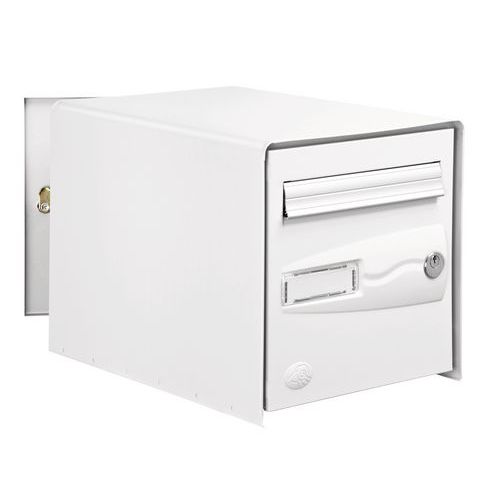 Cassetta delle lettere in acciaio resistente al fuoco con fessura richiudibile (37,5 x 3 cm) situata sotto lo sportellino per proteggere la corrispondenza.